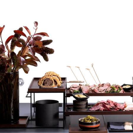 Maximise buffet space with cleverly designed risers that utilize vertical space, allowing for more dishes without overcrowding, creating an organised and appealing layout.