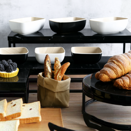 Build your food display with the TopStyle Long Melamine Tray. Best paired as a surface with the TopStyle Black Stand Risers, these trays elevate your food presentation.